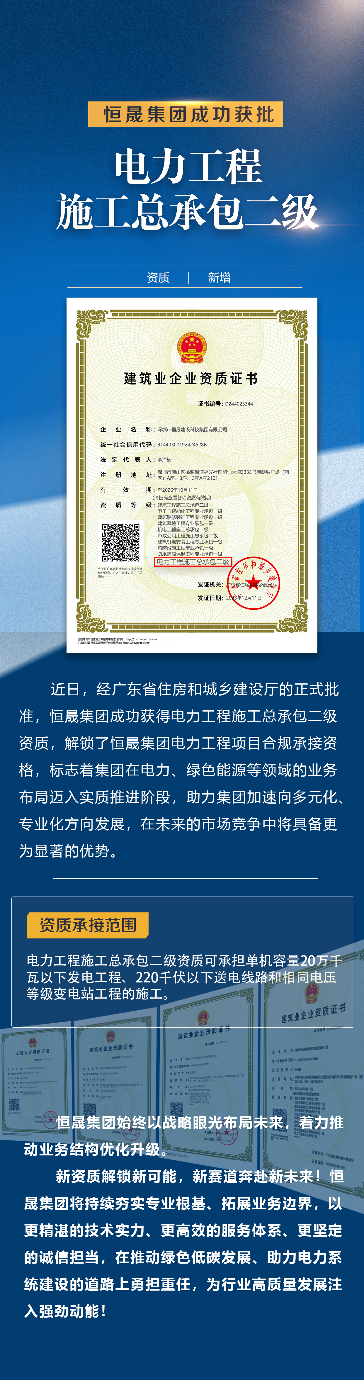 资质新增 | 电力工程施工总承包贰级